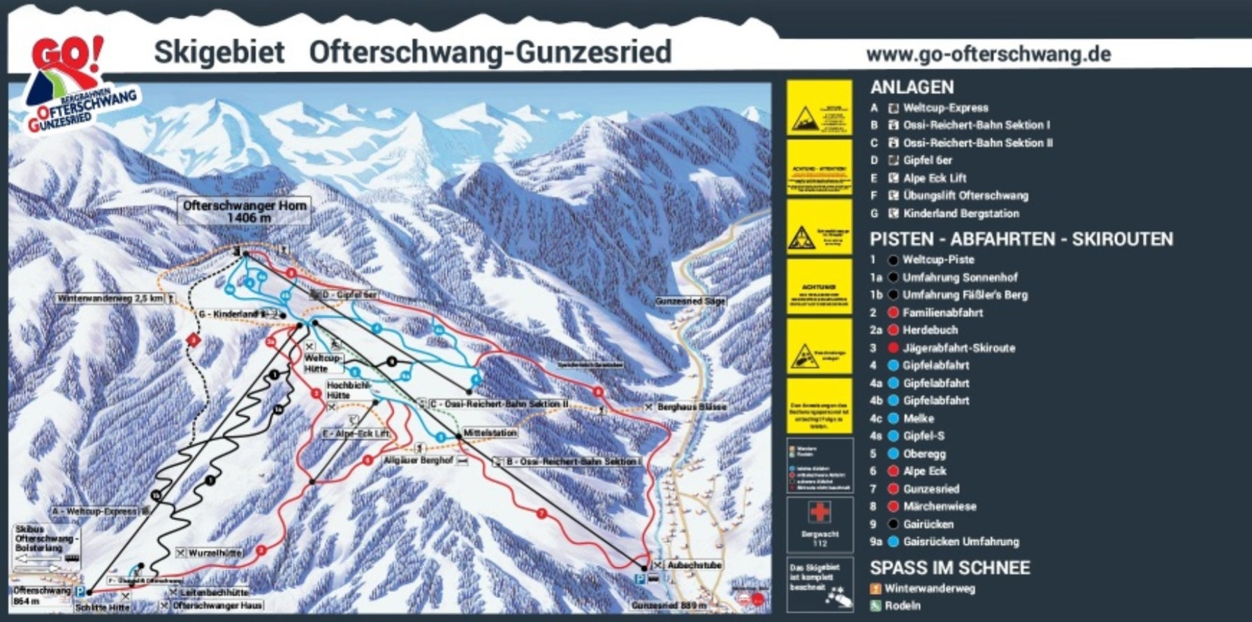 Le plan des pistes vous offre une vision globale et complète du domaine skiable, des pistes et des remontées mécaniques de Ofterschwang - Gunzesried. Alors un conseil, avant de partir, pensez à imprimer le plan des pistes de Ofterschwang - Gunzesried !