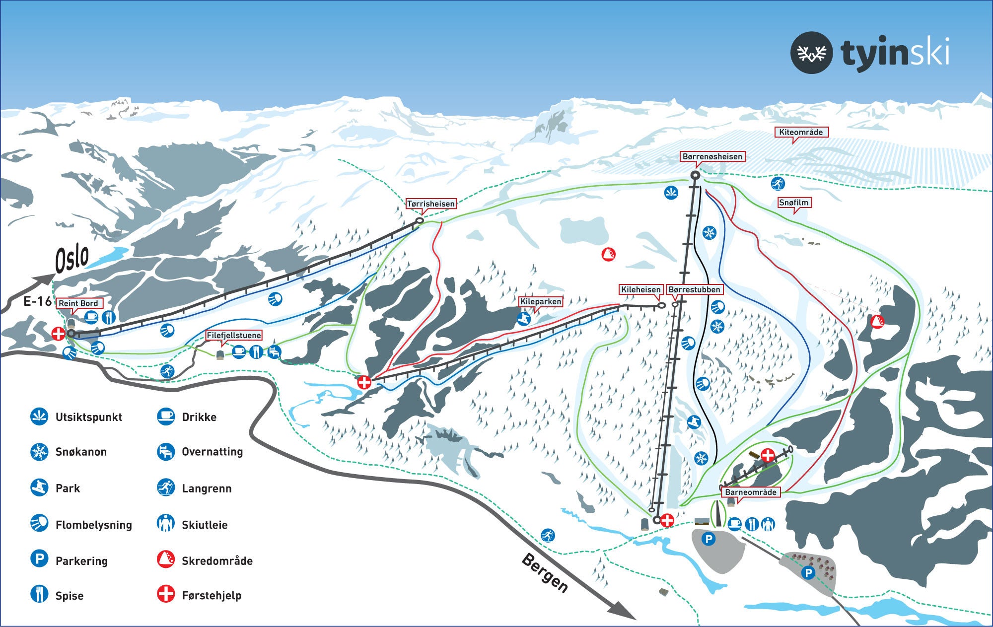 Plan des pistes - Tyin - FilefjellLe plan des pistes vous offre une vision globale et complète du domaine skiable, des pistes et des remontées mécaniques de Tyin - Filefjell. Alors un conseil, avant de partir, pensez à imprimer le plan des pistes de Tyin - Filefjell !Cliquez pour agrandir le plan des pistes.