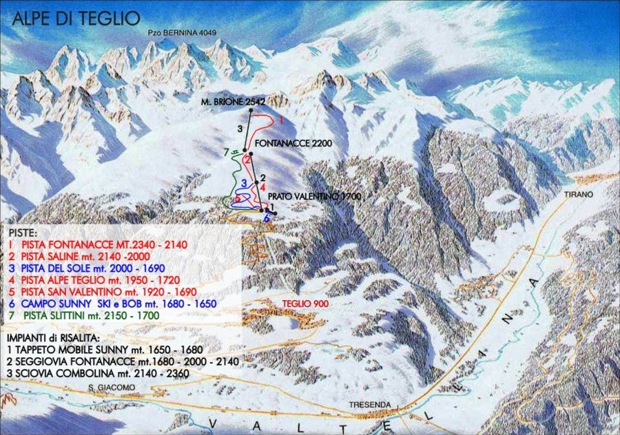 Plan des pistes - TeglioLe plan des pistes vous offre une vision globale et complète du domaine skiable, des pistes et des remontées mécaniques de Teglio. Alors un conseil, avant de partir, pensez à imprimer le plan des pistes de Teglio !Cliquez pour agrandir le plan des pistes.