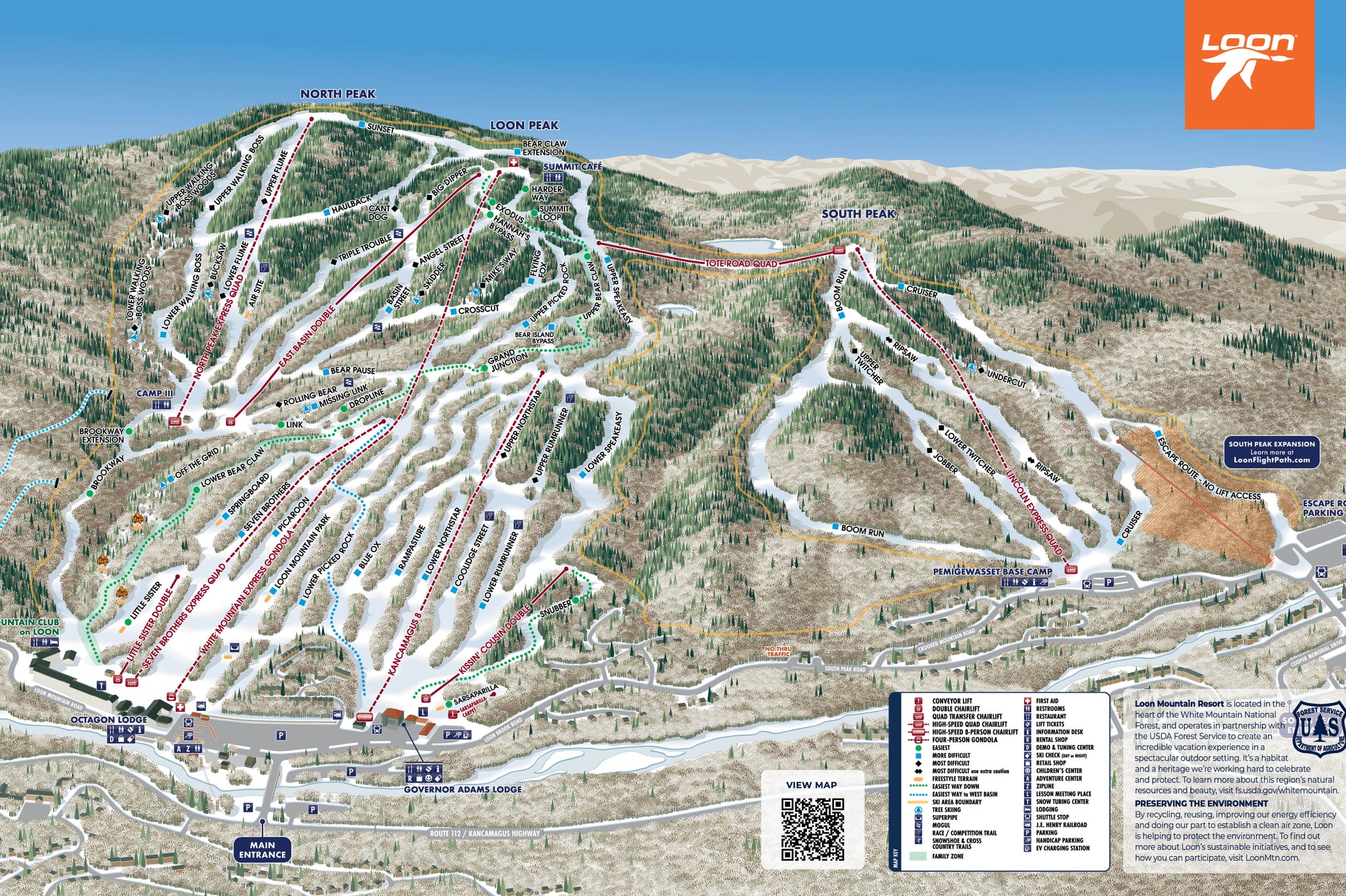 Le domaine skiable de Loon Mountain s’étend sur environ 72 km de pistes, réparties sur trois zones principales : North Peak, Loon Peak et South Peak. Chaque secteur propose une ambiance distincte et des pistes adaptées à différents niveaux de compétence.