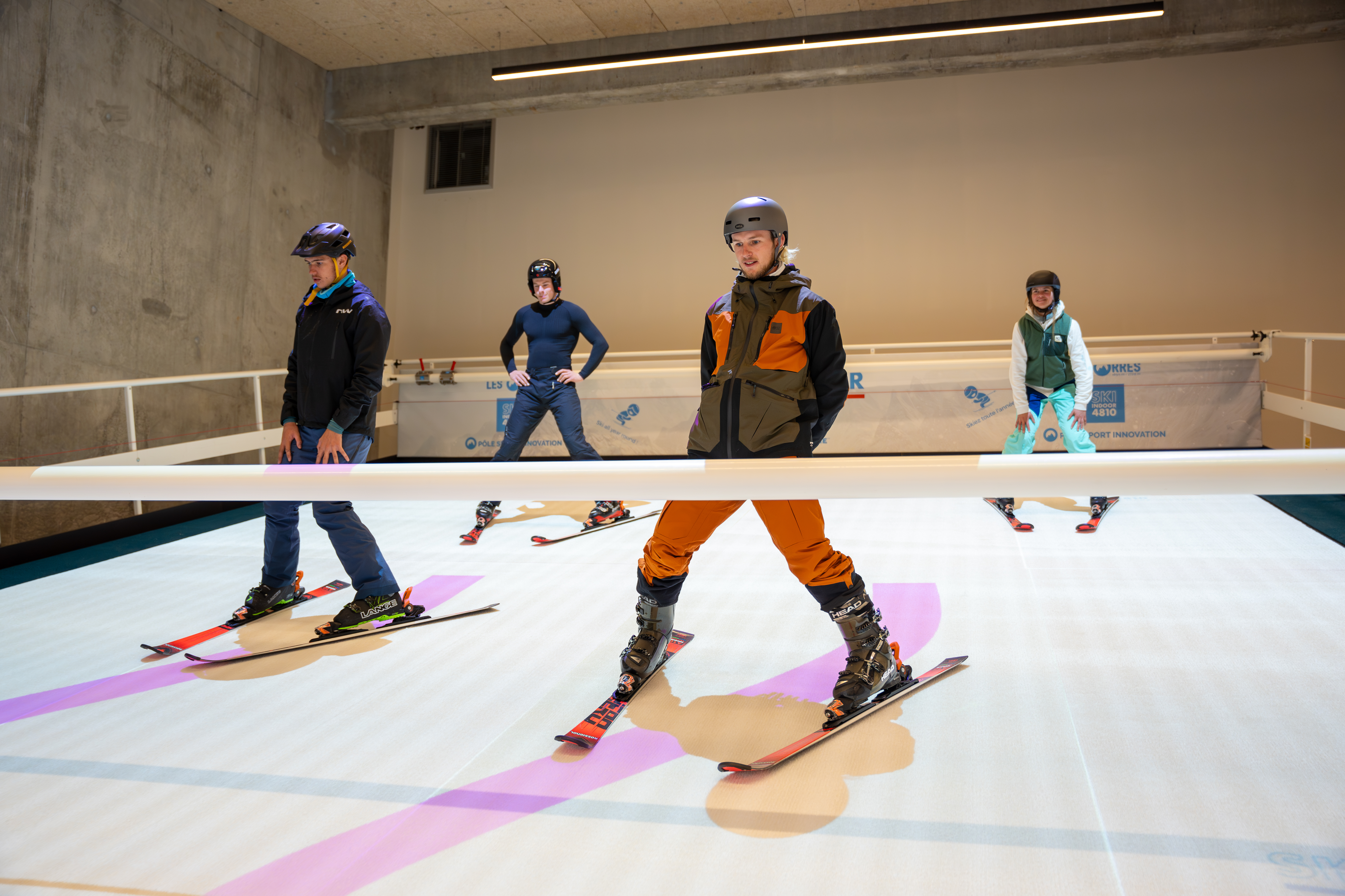 Ski indoor sur tapis incliné. Un outil rare, XXL, qui permet d’apprendre en accéléré, de progresser techniquement et de se réathlétiser, le tout sous supervision ESF.