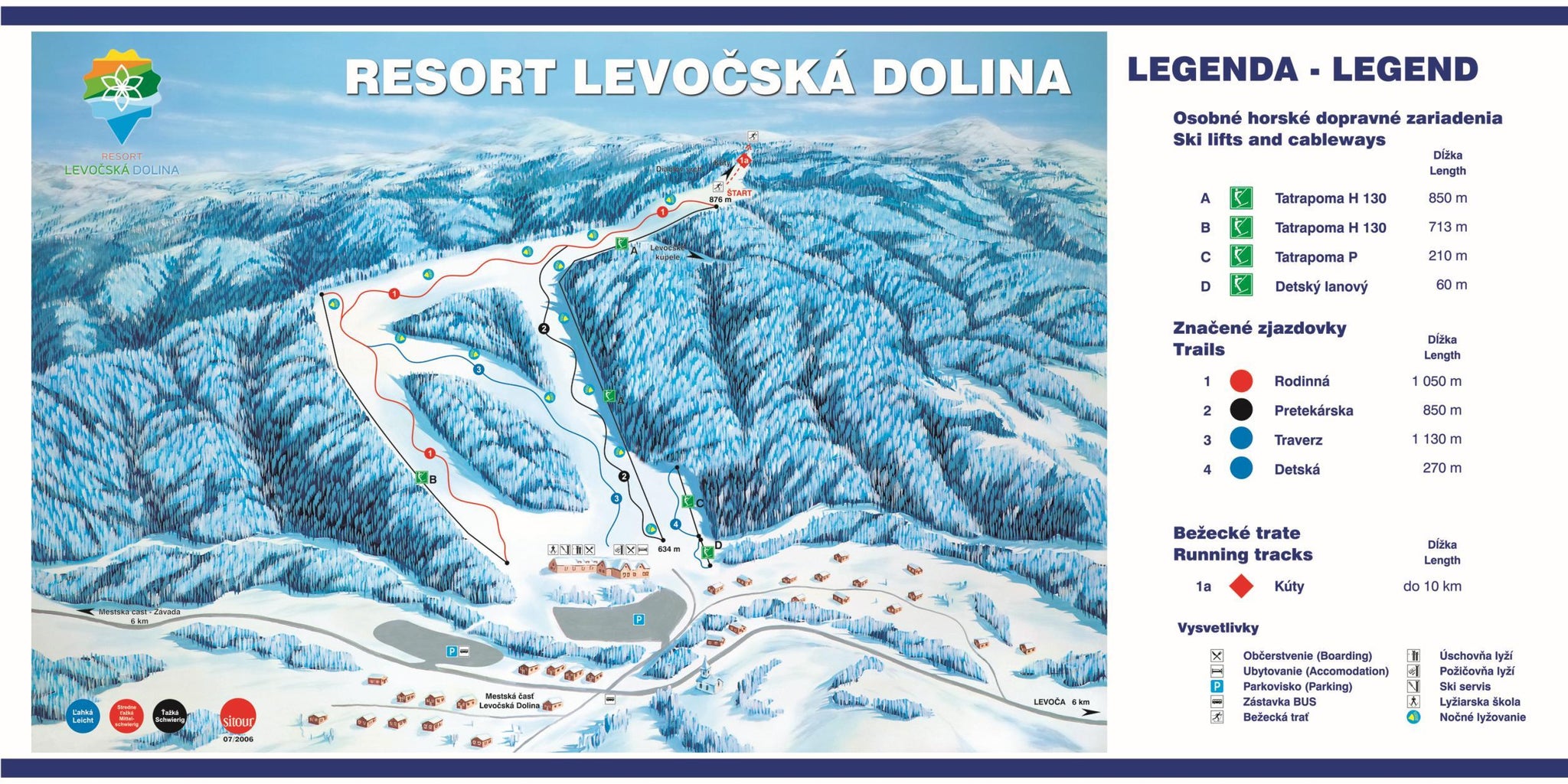 Plan des pistes - Resort Levočská dolinaLe plan des pistes vous offre une vision globale et complète du domaine skiable, des pistes et des remontées mécaniques de Resort Levočská dolina. Alors un conseil, avant de partir, pensez à imprimer le plan des pistes de Resort Levočská dolina !Cliquez pour agrandir le plan des pistes.